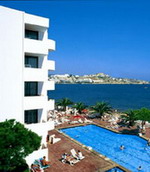 The modern beachfront Hotel Nautico Ebeso features spacious terraced swimming pools overlooking the sea towards the Island of Formentera, and is located 600 meters from the center of Ibiza Town. Guests can laze by the pool overlooking the sea, cool down with a drink or two at the poolside bar, or play a couple of frames on the pool table.  The restaurant offers hot and cold buffet meals for breakfast and dinner, with arched windows providing sea views in a light and airy atmosphere.  As well as having easy access to town center, local attractions include the cathedral, the marina and the archaeological museum, all within a kilometer. Ibiza Airport is located six kilometers from the hotel. The 123 guestrooms are simply decorated and have glass double doors leading out on to balconies or terraces.