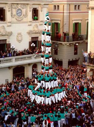The Castellers de Vilafranca is a cultural and sporting association whose main objective is to build castells (human towers). It has the status of a public-interest association. The group was founded in 1948 in response to the increased interest in human tower building in Vilafranca del Penedès, a Catalan tradition that has evolved since the 18th Century Ball de Valencians, a dance from Valencia.